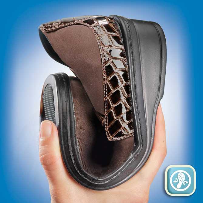 Sus laterales elásticos se adaptan a la forma de tu pie sin rozar ni molestar, ¡algo muy necesario si se padece de dolorosos juanetes! Su plantilla acolchada de piel auténtica te garantiza la máxima comodidad en cada pisada. Cuenta también con horma extra-ancha muy confortable, y un diseño irresistible con elegante acabado cocodrilo. Su tacón en cuña es de la altura perfecta recomendada por los podólogos y además, estiliza la figura.