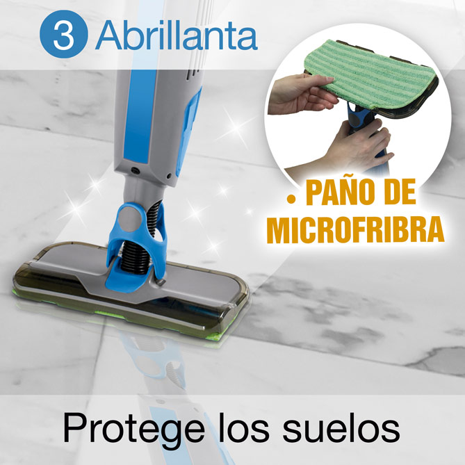 Su paño de Microfibra además de secar el suelo al momento y dejarlo reluciente, está diseñado para atrapar el polvo residual, eliminar la suciedad en profundidad y abrillantar.