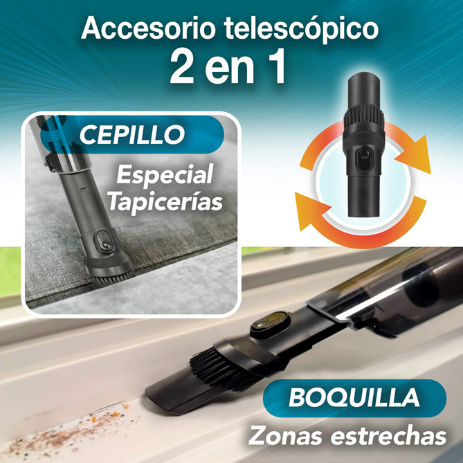 Con Atomic Pro limpiarás zócalos, rodapiés, teclados, estanterías, cojines, sofás, el interior del coche e incluso telarañas en lo alto de la pared, de forma rápida y sencilla.
