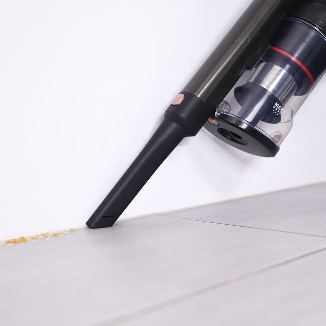 Su cabezal flexible llega perfectamente a todas las esquinas y tiene 11 luces LED que consiguen que ni la más mínima mota de polvo pase desapercibida. Y como su rodillo se saca fácilmente, nunca se acumularán pelos ni suciedad.