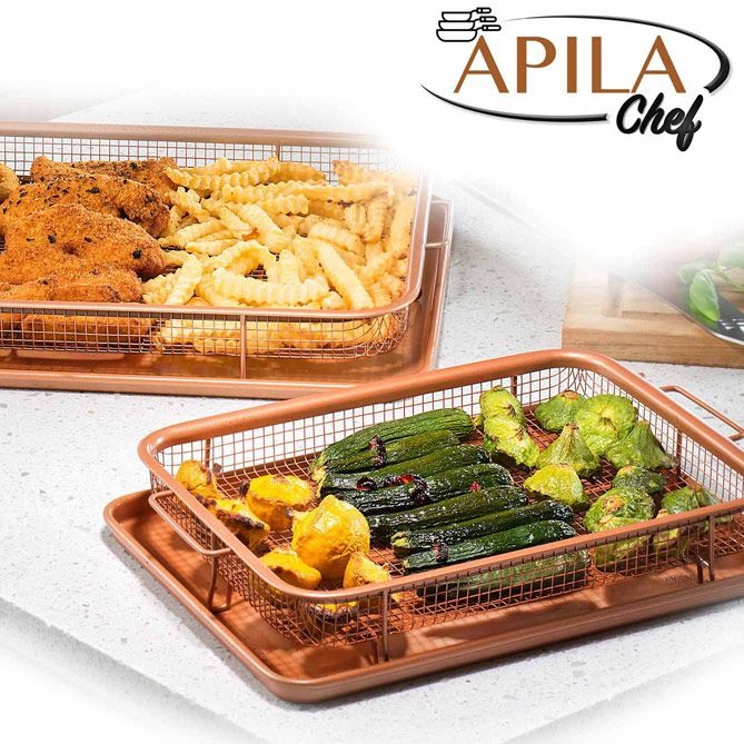Aprovecha nuestra Maxi Oferta y consíguela ahora ¡con un 25% de descuento! Además, si quieres, no empiezas a pagar hasta dentro de dos meses. La recibirás cómodamente en tu casa y, junto a tu Apila Chef, te enviaremos una cesta para cocer al vapor, una cesta para freír y una cesta para horno y su bandeja, ¡completamente gratis! ¡No dejes escapar esta oportunidad única para ganar espacio en tu cocina!