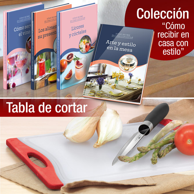 Y también GRATIS, la Colección en 4 tomos “Cómo recibir en casa con estilo”: Arte y estilo en la mesa, Licores y cócteles, Los alimentos y su presentación y Cómo servir el vino.