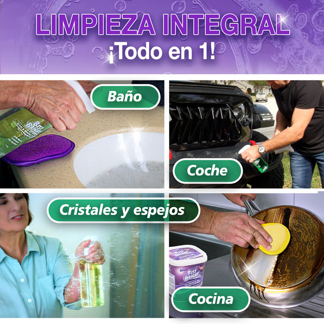 Perfecto para cocina, baño, cristales, acero inoxidable, tapicerías, suelo, alfombras, ropa y más. Es como tener un solo producto para limpiar toda la casa.