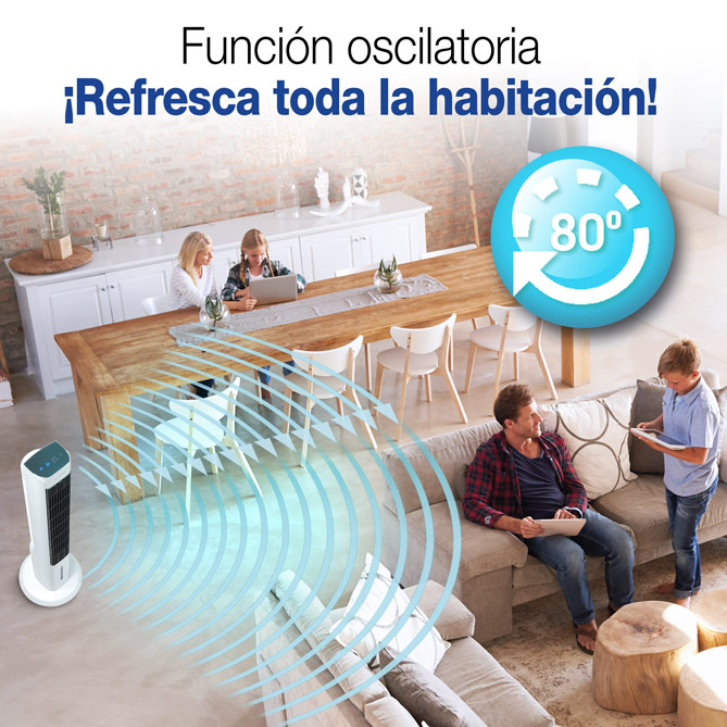 3-SIENTE EL FRESCOR EN TODA LA HABITACIÓN: gracias a su función Oscilatoria -gira automáticamente en un ángulo de 80°-, ARCTIC AIR distribuye el aire fresco por toda la habitación de forma uniforme ¡y refresca hasta el último rincón!