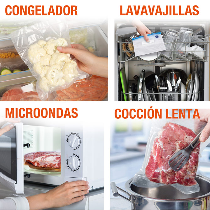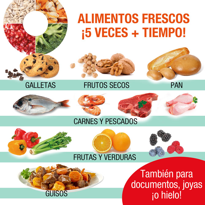 TUS ALIMENTOS IGUAL DE FRESCOS POR MUCHO MÁS TIEMPO: con todos sus nutrientes y frescura, bien sellados al vacío y herméticamente cerrados