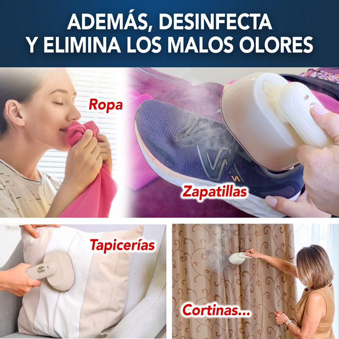 Magic Iron no solo elimina arrugas, también refresca y ayuda a eliminar olores de la ropa y de otros tejidos del hogar. Puedes usarla para alisar cortinas sin descolgarlas, refrescar la ropa de cama, eliminar olores de chaquetas o incluso revitalizar sofás, cojines o los asientos del coche. Es la solución más rápida y eficaz para mantener todo impecable.