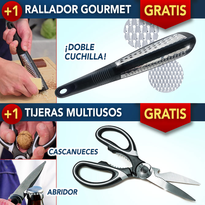 El Set de Cuchillos Titán incluye además los más prácticos accesorios de cocina: