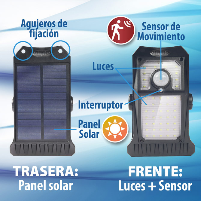• Modos de luz: constante + con sensor de movimiento (3-5 m de distancia)