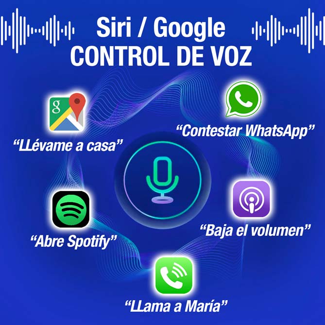 Incluye ranura para tarjeta de memoria SD, puerto USB para cargar el móvil y micrófono y altavoz internos. ¡Es tan intuitiva y práctica que ya no vas a querer usar otra cosa! Porque además, funciona con las apps más valoradas como Spotify, Apple Music, Google Maps…