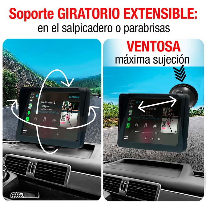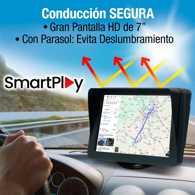 ¿El soporte que usas para colocar el GPS o el móvil en tu coche se cae constantemente? ¿Actualizar el ordenador de a bordo te sale por un ojo de la cara? Pásate a Smart Play, la pantalla táctil con la que llegarás a tu destino sin complicaciones mientras escuchas tu música o pódcasts favoritos y realizas llamadas en manos libres. Es muy fácil de instalar y gracias a su gran tamaño podrás ver toda la información sin despistarte de la carretera.