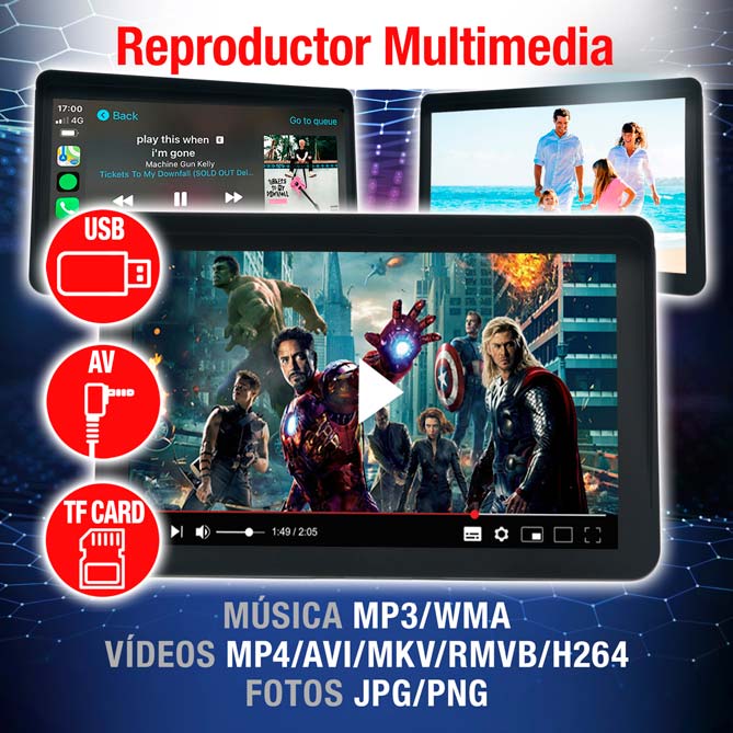 Y viene con mando a distancia para pausar, parar y reproducir desde el asiento de atrás, perfecto para niños, y así no te despistes de la carretera.