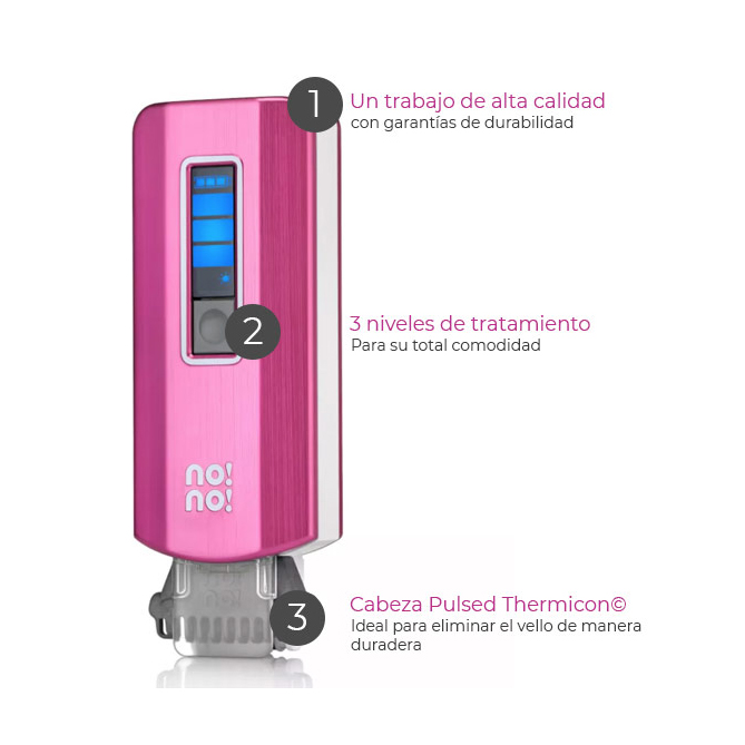 La Tecnología Patentada Thermicon® solo se puede encontrar en los productos no!no!® PRO. Esta tecnología usa los principios científicos de la transferencia térmica. Un calor suave se desplaza por la piel eliminando el vello incipiente, mientras que al mismo tiempo cristaliza la raíz para conseguir resultados duraderos. Su cabezal Thermicon® ha sido desarrollado para cumplir los más altos estándares de calidad y seguridad, que permiten a no!no!® PRO adaptar la tecnología profesional de eliminación del vello para un uso en casa seguro y efectivo.