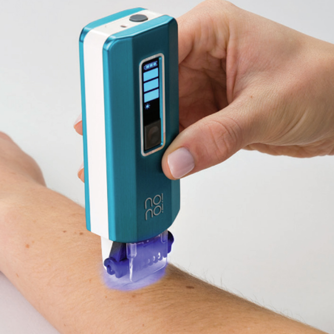 Como esta tecnología es ciega al color, no!no!® PRO se puede usar de manera segura en todos los tonos de piel y resulta eficaz para tratar y eliminar el pelo de cualquier color en la cara o en el cuerpo.