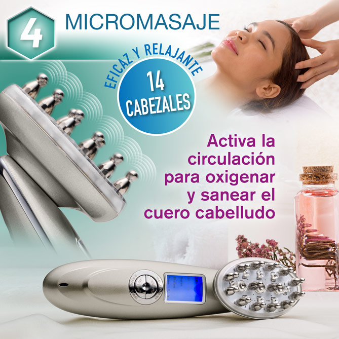Hombres y mujeres de todas edades queremos un cabello sano: es fundamental para nuestra imagen y autoestima. Y ahora puedes conseguirlo con el nuevo Láser Capilar REVITALIZE. Este revolucionario peine incorpora 4 Tecnologías científicamente comprobadas -Láser suave, Radiofrecuencia/EMS, Fototerapia y Micromasaje- para fortalecer el cabello y estimular su crecimiento. Seguro, ligero, sin cables y con pantalla LCD, es tan fácil de usar como cepillarte con él 10 minutos al día. Los resultados se notan: si ves una caída excesiva, podrás revertir este problema y conseguir un pelo fuerte, luminoso y con volumen. Y si ya posees un cabello sano, te ayudará a mantenerlo y mejorarlo. Todo en tu hogar, con el aval de la ciencia, sin gastar dinero en consultas de centros capilares, lociones, champús… ¡Está en tu mano conseguir la apariencia que deseas!