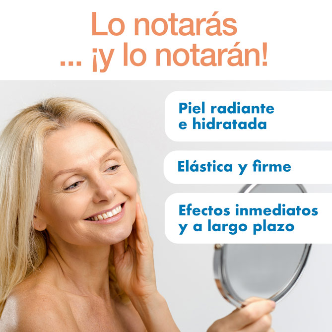 Su innovadora fórmula con 17 aminoácidos, 7 péptidos y extractos de plantas de origen natural estimula la creación de colágeno con un cuádruple efecto: