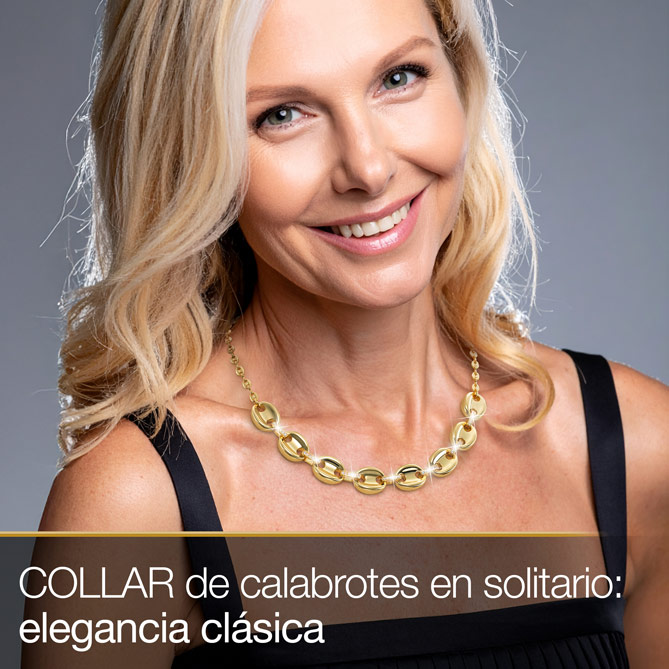 El Collar LOVE & LUCK, con sus inconfundibles eslabones de calabrote, tiene ese aire intemporal de las joyas que siempre están de moda. Por eso, ofrece mucho juego a la mujer con estilo. Una joya que, por su diseño y la belleza de sus materiales, nunca falla: aporta luz –iluminando el escote con el brillo incomparable de sus Circonitas–, elegancia y ese toque de Alta Joyería de su exquisito baño en Oro de 1ª Ley.