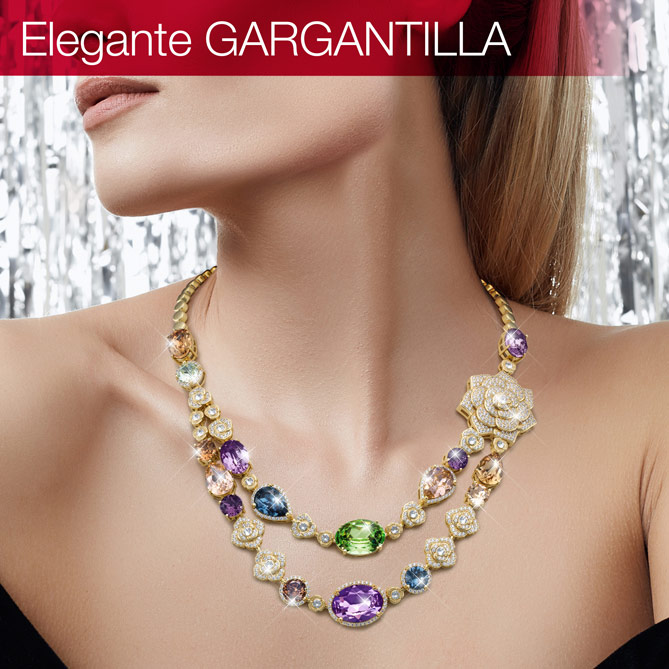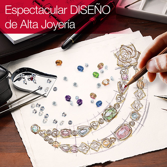 Sinónimo de lujo y elegancia, fiel reflejo de las Piedras Preciosas, hasta el punto de que solo ojos expertos son capaces de distinguirlas… Más de 560 Circonitas en los tonos más espectaculares –Zafiro, Esmeralda, Topacio fumé, Diamante, Amatista…– añaden sutil elegancia a la Gargantilla y los Pendientes Jardín de Camelias. La combinación de 3 tipos de tallas -oval, lágrima y redonda- y de dos tipos de engaste –garra y pavé– propios de la Alta Joyería, son el mejor ejemplo de que las joyas hechas con Circonitas brillan a la altura de los diseños de Alta Joyería más buscados.
