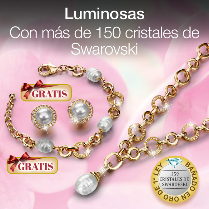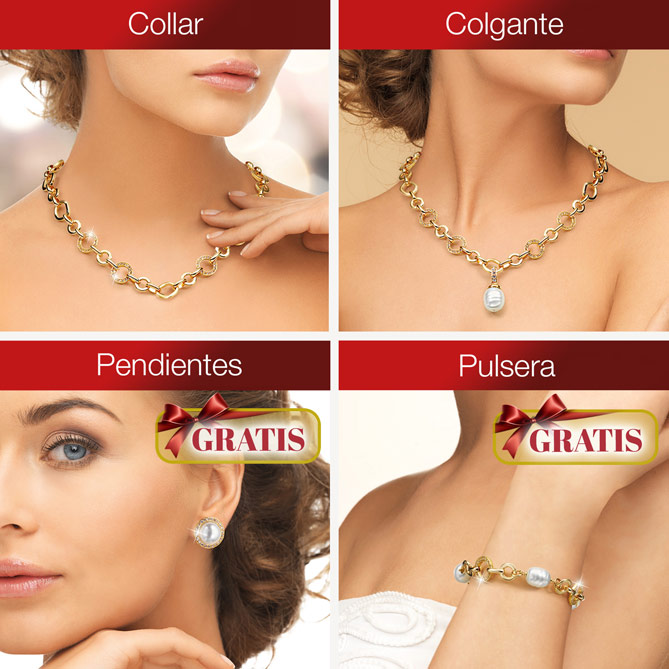 ¿Quieres lucir unas perlas maravillosas cada día? El Conjunto Paraíso está compuesto por 4 joyas imprescindibles bañadas en oro de Primera Ley: collar, colgante, pendientes ¡de regalo! y pulsera ¡también de regalo! realizadas con perlas de Mallorca y envueltas en el brillo mágico de más de 150 cristales de Swarovski®. Para combinarlas a tu gusto y sacarle el máximo partido…