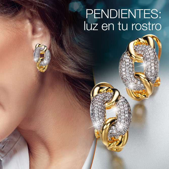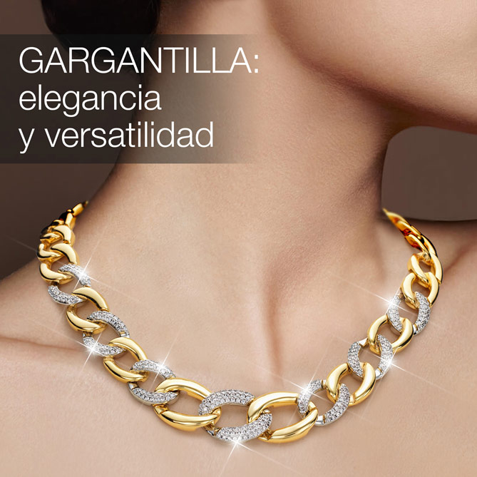Una revisión del clásico eslabón cubano de Alta Joyería, salpicado con la luminosa belleza de más de 700 Circonitas brillantes como Diamantes, protagoniza este fascinante Conjunto. La maravillosa Gargantilla, que juega con el volumen de los eslabones lisos y cuajados de Circonitas, queda ideal con una camisa, con un traje de noche o un jersey de cuello alto... La Pulsera a juego, es espectacular… El Anillo ¡no te lo quitarás nunca! Y los Pendientes, con su elegancia innata, lo dicen todo de la mujer que los lleva… Lúcelas juntas, en solitario o combínalas entre sí y descubre tu lado más sofisticado. ¡Vive el glamour!