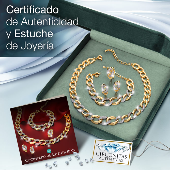 El Conjunto se entrega en un elegante estuche de joyería y junto con su Certificado de Autenticidad que avala la calidad de los materiales empleados en su elaboración.