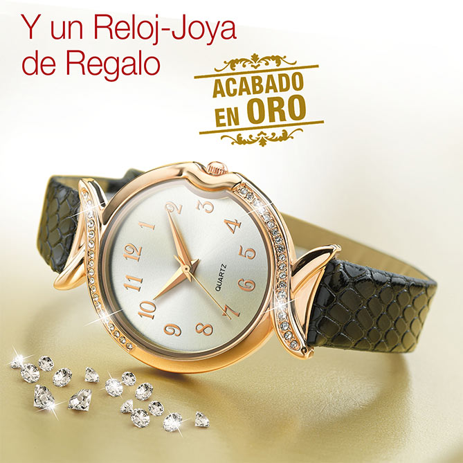 Y de REGALO, el Reloj-Joya "Nuit D’or", acabado en Oro y embellecido con deslumbrantes cristales tallados. ¡Precioso!