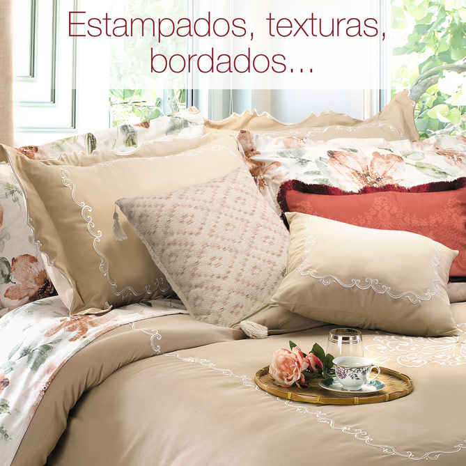 El Conjunto de Cama PARADISE te fascinará por su exquisita elegancia… Una preciosa Colcha-Edredón desenfundable con relleno nórdico, 2 Cojines cabeceros, 3 Cojines decorativos ¡e incluso un elegante Juego de Sábanas! La suavidad de los tejidos, la elegante combinación de tonos y estampados, los detalles de bordados y pasamanería, sus delicados acabados artesanales… Cada detalle de estas 11 maravillosas piezas coordinadas respira elegancia y sosiego: déjate envolver por la belleza en tu paraíso privado.