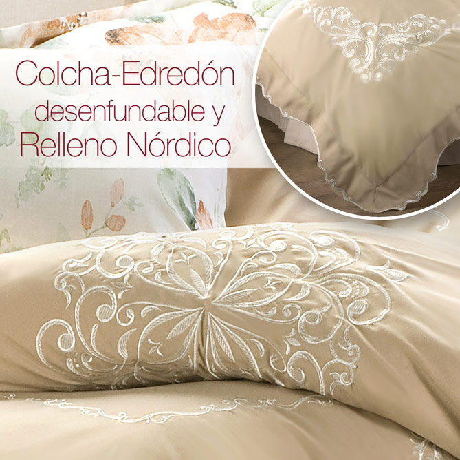 ¡Lo tiene todo! Para redescubrir la belleza de tu dormitorio no necesitas nada más que el Conjunto PARADISE. Diseñado por expertos en moda e interiorismo, combina a la perfección texturas, estampados, bordados y pasamanería, volantes... Todo lo que siempre soñaste se reúne en perfecto equilibrio en este exclusivo Conjunto de 11 espectaculares piezas coordinadas con un diseño adaptado a los hogares de hoy en día, que incluye un relleno nórdico y un exclusivo Juego de Sábanas confeccionadas con esmero y detalle. PARADISE viste tu dormitorio a la medida de tus sueños...