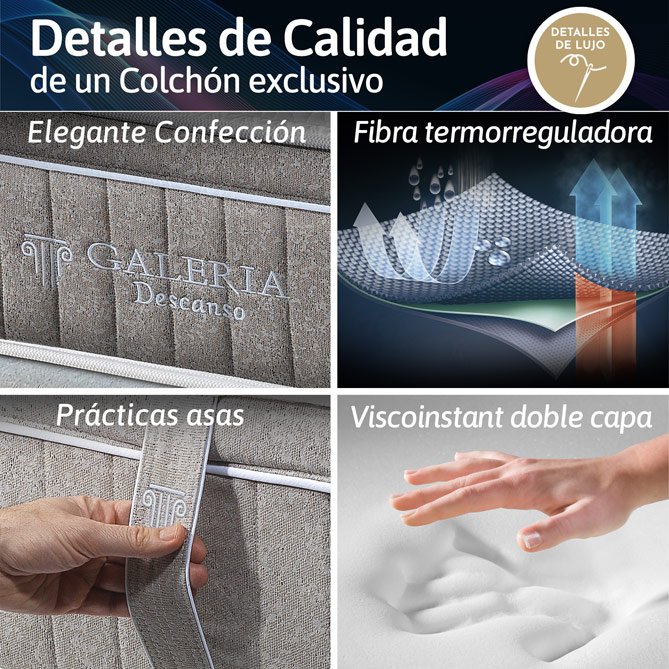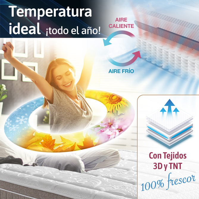 ¿Te gustaría dormir en un Colchón tan cómodo que parece que “flotas”? ELITE ZERO GRAVITY tiene 5 zonas de descanso diferenciadas para reducir los puntos de presión y ofrecerte la firmeza exacta, ni más ni menos, que necesita cada parte de tu cuerpo: descubre la sensación de “ingravidez” que cuida tu espalda y te asegura un sueño saludable y reparador para despertarte ¡lleno de energía! Además, su núcleo de Muelles Ensacados de última generación es 100% transpirable para dormir sin exceso de calor ni humedad y con libertad de movimientos: no molestarás a tu pareja aunque te gires. Hipoalergénico, hecho en España y con Almohada/s a juego de Regalo, ¡notarás la diferencia desde la primera noche! ¡Pide el tuyo ahora y consíguelo con un 50% de descuento gracias a nuestra Oferta Flash! Lo recibirás cómodamente en tu casa, podrás probarlo durante 101 noches sin compromiso y, junto a tu ELITE ZERO GRAVITY, te enviaremos 2 regalos muy especiales: 2 almohadas viscoelásticas y una pareja de albornoces. Eso sí, tienes que darte prisa, ¡las unidades son limitadas!