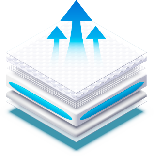 • Este sofisticado Sistema de Propulsión de Aire convierte cada pequeño movimiento de tu cuerpo en un soplo de aire fresco dentro del colchón: ¡qué gusto!