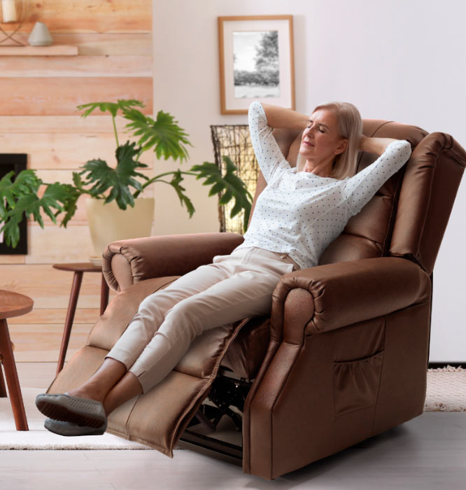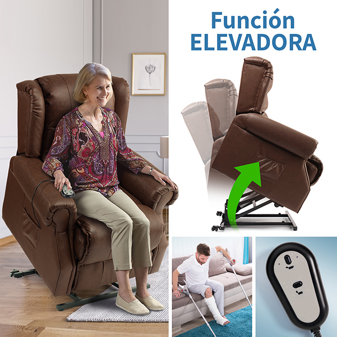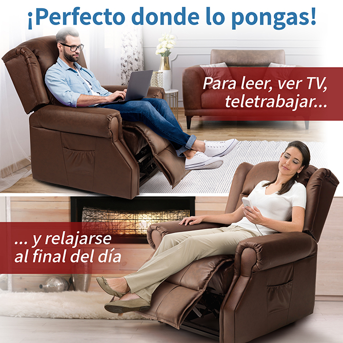 • Comodidad por encima de todo: esto es lo que el Sillón Elevador COMFORT PLUS ofrece. Totalmente ergonómico, su respaldo se abate por completo y su reposapiés se eleva para que las piernas descansen. Y después del relax, su Función Elevadora te pondrá en pie suavemente.