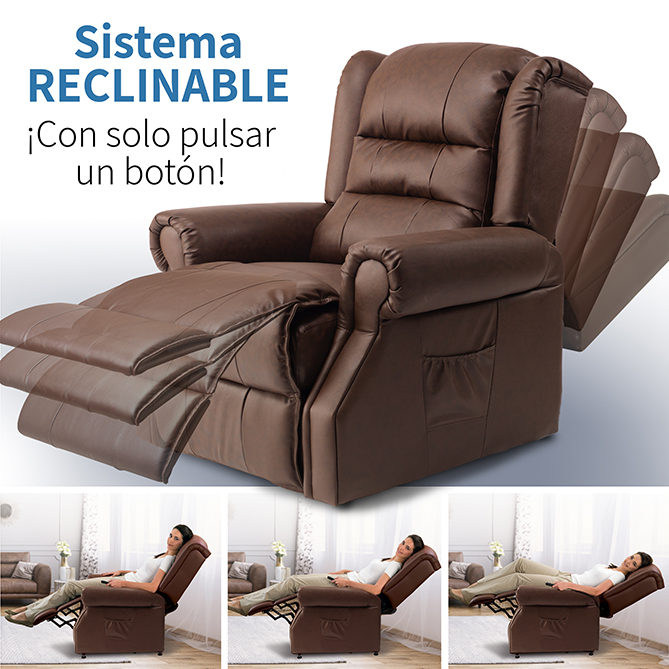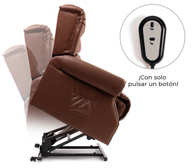 • Todas sus funciones son automáticas: tanto para reclinarse totalmente y extender el reposapiés, como para levantarse, solo hay que pulsar un botón de su mando. ¡Así de fácil!