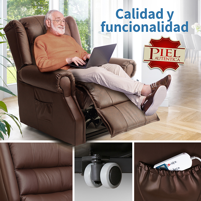 El sillón de piel auténtica con masaje, termoterapia y función “levantapersonas”