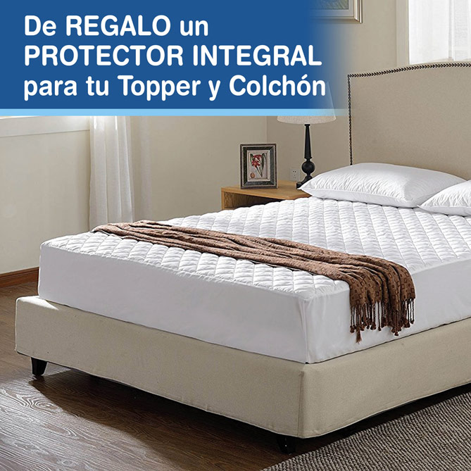 Y, de REGALO, un práctico PROTECTOR INTEGRAL PARA TU TOPPER Y TU COLCHÓN (disponible para camas individuales)