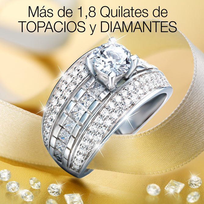 El Diamante no solo habla de glamour, sino del milagro del tiempo que da lugar a tan extraordinaria belleza... El Topacio es la Piedra Preciosa preferida por la realeza y por los mejores orfebres de todos los tiempos. Solo los ojos más expertos son capaces de distinguir estas dos Piedras Preciosas, por eso, se han escogido más de 1,8 Quilates de Diamantes y Topacios para dar vida y luz a este impresionante Solitario de Oro blanco que ahora -¡y por mucho menos de lo que imaginas!- puedes ver brillando en tu mano…