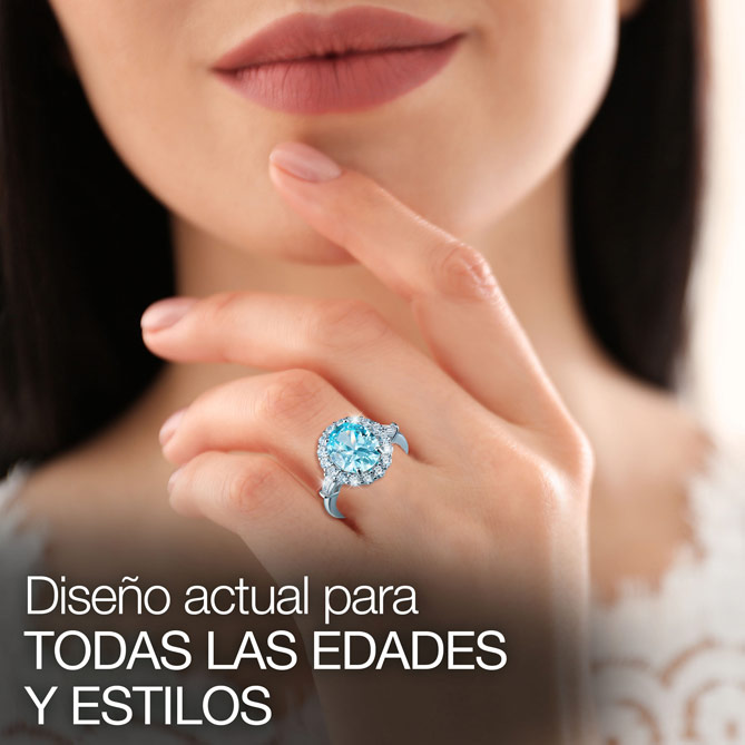 Ahora puedes lucir un Anillo único: ESENCIA DE AGUAMARINA es un espléndido Solitario que recrea el magnetismo de la Aguamarina, embellecido con 18 Topacios extraídos de las profundidades de la Tierra. Una combinación muy actual –la Aguamarina es la estrella en las nuevas colecciones de Alta Joyería–, sobre Plata de 1ª Ley, que también es una llamada a la fortuna –la Aguamarina se asocia con la buena suerte–. Ideal para la mujer de cualquier edad y estilo, es una maravillosa Joya que está verdaderamente a tu alcance.