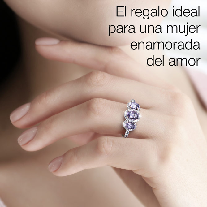 Tres Piedras Preciosas que simbolizan el pasado, el presente y el futuro… Tres momentos mágicos de tu vida… Tres votos eternos: compromiso, fidelidad y respeto… El Anillo La Joya del Amor es un diseño que esconde un secreto, un mensaje entrañable, y lo hace con 3 maravillosas Amatistas “Rosa de Francia” llenas de significado y 48 brillantes Topacios. Casi 1.5 Quilates de las gemas más preciadas y exclusivas deslumbran sobre la elegante belleza del Oro rosa de 1ª Ley. Hazlo tuyo… ¡a un precio que te va a enamorar!