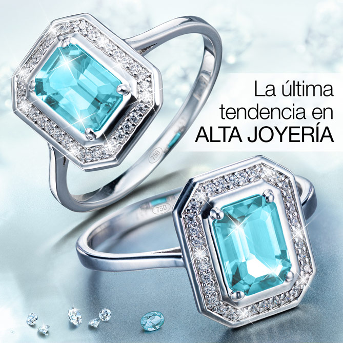 Por su belleza y simbolismo –se asocia con la buena suerte–, la Aguamarina es la Piedra Preciosa del momento. Su encanto hace irresistibles joyas como el Anillo LUJO AGUAMARINA: de Oro blanco de 1ª Ley, con un Solitario de Aguamarina magistralmente tallado y 34 auténticos Diamantes. Y si piensas que sólo los bolsillos más privilegiados podrán lucirlo… ¡su precio te hará cambiar de opinión!