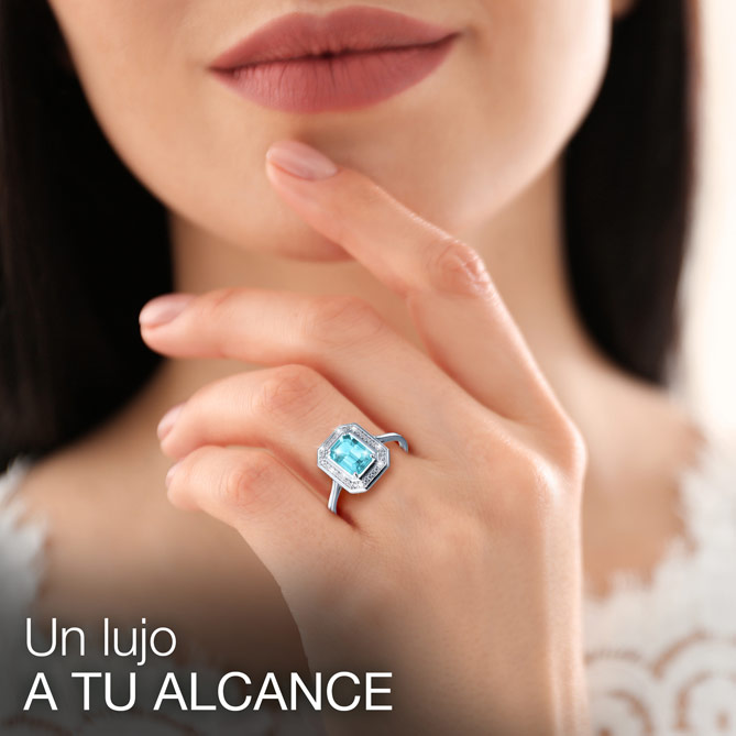 Imagina capturar un mar, con vibrantes olas que brillan bajo el sol, en un Anillo. Imagina LUJO AGUAMARINA: un Solitario con una Aguamarina perfecta, ¡de más de 1 Quilate!, custodiada por 34 genuinos Diamantes. Un diseño exclusivo de Oro blanco de 1ª Ley, actual y muy elegante, perfecto para lucir a diario. ¿Y sabes lo mejor? Que es Alta Joyería a un precio que no es de Alta Joyería… ¡Aprovecha la ocasión para lucirlo!