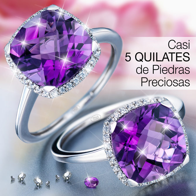 Este Anillo es una inversión para toda la vida ¡y este es el momento perfecto para conseguirlo! El diseño exclusivo del Anillo LUXURY Amatista te va a enamorar, la belleza de las Piedras Preciosas que luce –una gran Amatista y 32 Diamantes con un peso total de casi 5 Quilates– te encandilará, la elegancia del Oro blanco de 1ª Ley te seducirá y su estupendo precio te va a acabar de convencer: es ese lujo de Alta Joyería que te mereces. ¿Lo quieres...? ¡Es tuyo!