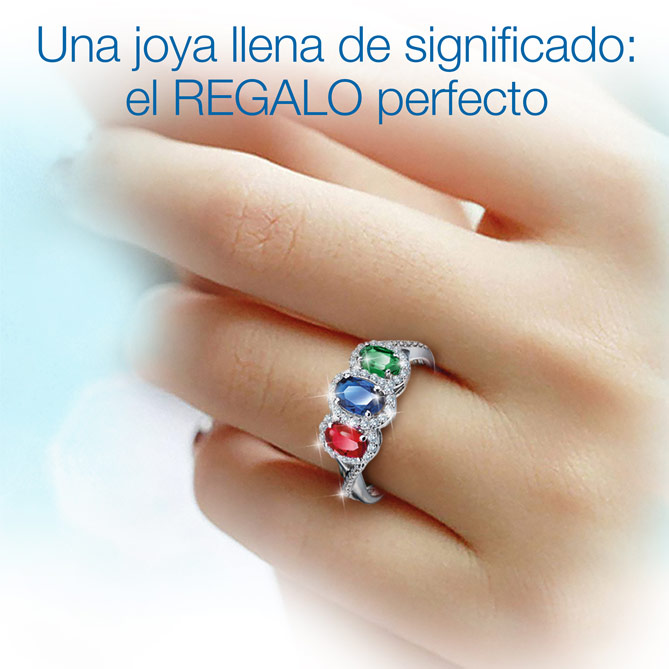 Materiales preciosos llenos de significado.... SUEÑO DE PLATINO es una actualización del clásico diseño “Trilogy” ¡que está más de moda que nunca! Un espectacular Zafiro de medio Quilate, flanqueado por un Rubí y una Esmeralda de gran tamaño, son los protagonistas de este maravilloso diseño, iluminado también por 56 Topacios, talla redonda, y por el brillo espectacular del Platino de Ley. Ideal como Anillo de compromiso, para celebrar una ocasión especial o como un merecido capricho, ahora, vas a disfrutar del lujo de verlo brillar en tu mano…