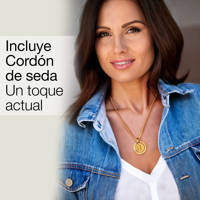 La Joya perfecta es la que, además de bella y glamurosa, se adapta a tu estilo en cada momento y está por encima de las modas… Como el Collar LIBRA DE ORO, un ejemplo de versatilidad para deslumbrar a tu manera porque podrás llevarlo de 3 formas diferentes: 1) La Joya completa (Collar + Colgante) es espectacular, ideal para atraer todas las miradas en los eventos más señalados; 2) Sólo el Collar –con un sencillo gesto se retira del Colgante–, para lucir su clásica elegancia con prendas escotadas, blusas… y recibir cumplidos; 3) Si lo deseas, también podrás lucir el Colgante con el Cordón de Seda dorado -incluido de Regalo- para una imagen más moderna e informal... Es como tener 3 Joyas al precio de una y acertar siempre, elijas la combinación que elijas.