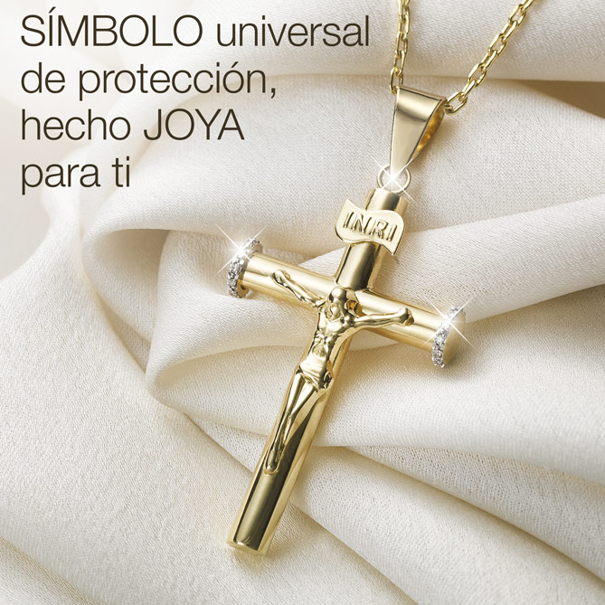 Para hombres y mujeres que saben que hay joyas atemporales y llenas de valor, nace la Cruz de Oro ESENCIA. 24 Diamantes talla brillante, únicos y exclusivos. La calidez del Oro de 1ª Ley, un valor seguro. Y el diseño, sobrio y elegante, de una joya eterna: el símbolo de protección más universal se viste de Alta Joyería en esta impresionante creación llena de significado. Tú eliges como lucir esta joya excepcional reflejo de los valores que de verdad importan…