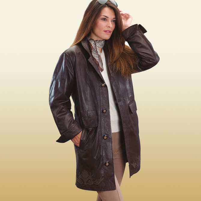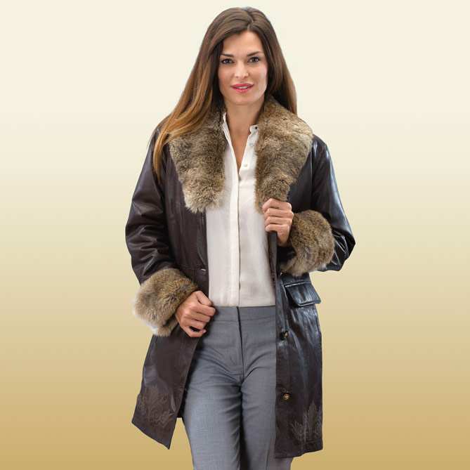 Lino Corelli ha escogido el patronaje del chaquetón tres cuartos, cómodo de llevar en cualquier ocasión y con el largo adecuado, para que se adapte con gracia a todo tipo de mujer. Su excelente corte, su delicado bordado y la profundidad del tono de la piel, convierten este chaquetón en una prenda atractiva que queda bien con todo, en cualquier momento del día o la noche.