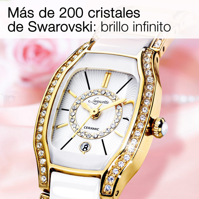 ¿Reloj o Joya? La respuesta es BIANCA Ceramic: la nueva creación de la prestigiosa firma Lanscotte. Un diseño exclusivo, que late con corazón suizo, en el que destaca la Cerámica blanca, protagonista en los modelos más deseados de las mejores firmas de Alta Relojería femenina por su indiscutible belleza y durabilidad. El Acero bañado en Oro de 1ª Ley IPG, de brillo inalterable, y los 220 cristales de Swarovski que le prestan su brillo a BIANCA Ceramic, lo convierten en una creación sublime: el Reloj-Joya con el que siempre soñaste, ahora, está a tu alcance.