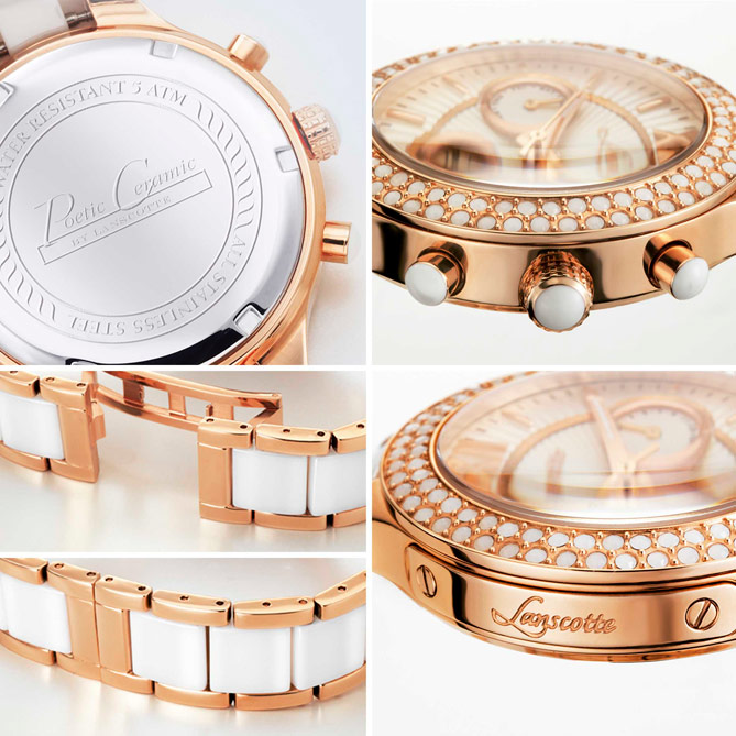 Hay relojes que simplemente marcan la hora… Otros, marcan tendencia, como Poetic Ceramic. Con la belleza de la cerámica, el Diamante, el Oro rosa y los cristales de Swarovski, es el Reloj-Joya más exclusivo de la firma suiza Lanscotte.