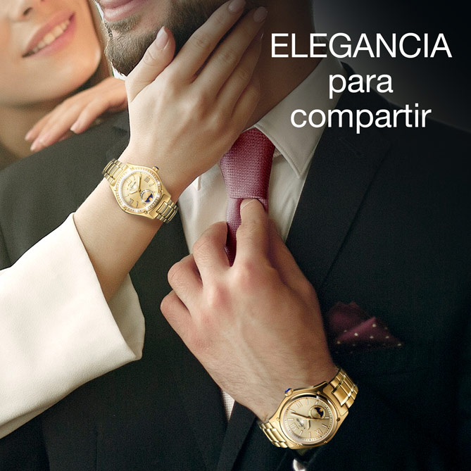 De una sofisticación impecable, en los diales de los Relojes LUX DORÉE conviven numerales romanos dorados y elegantes indicadores con marcas de luminiscencia; sobre un exquisito guilloché “punta de diamante” brillan los 2 Diamantes auténticos que adornan la pareja. Detalles como la corona con el extremo esmaltado en azul zafiro, el cristal de alta resistencia o los grabados de la marca, les aportan prestigio y exclusividad. Ambos modelos incluyen bisel superpuesto con tornillería que, en el modelo de señora, lleva además 51 luminosas Circonitas. Personales, únicos, los Relojes LUX DORÉE reflejan la elegancia y la personalidad del hombre y la mujer que los eligen: son pura clase.