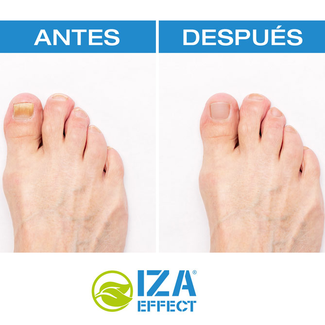 ¿Sientes picor en los pies? ¿Tienes la piel seca y agrietada o las uñas amarillas y deformadas? La solución que necesitas es IZA Effect. Gracias a su nueva fórmula mejorada, cuida de tus pies y de tus uñas y, además, funciona como antiséptico contra los hongos. Presume de pies cuidados, sanos y bonitos tan solo pulverizándolo sobre tus uñas y pies. ¡Notarás sus beneficios en solo unos segundos!