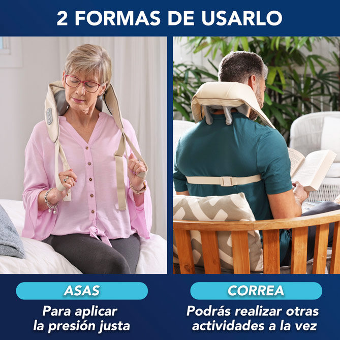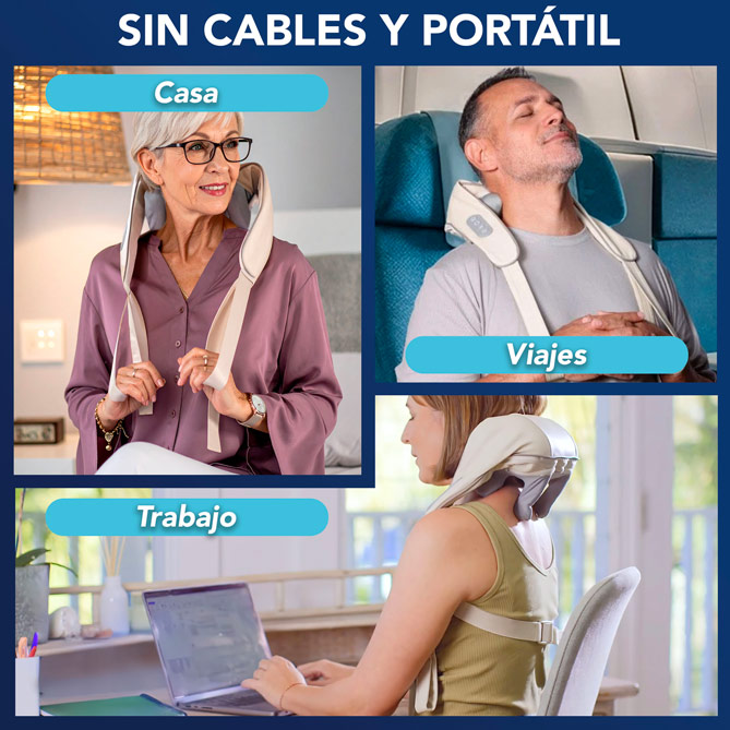 Sin cables y recargable, también incorpora correas ajustables que te permiten usarlo sin manos, aplicando la presión perfecta sin esfuerzo.